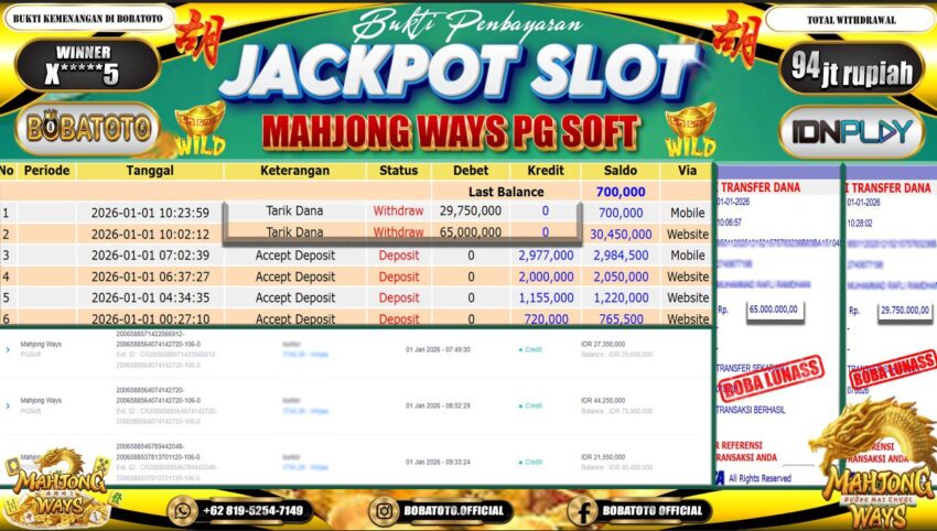BOBATOTO – Selamat kepada User id :X*****5 Telah berhasil mendapatkan kemenangan besar pada permainan SLOT MAHJONG WAYS Dengan kemenangan Sebesar Rp.94,000,000-. Setelah mengisi formulir withdraw dengan kurung waktu hanya 5 – 10 menit pihak bobatoto sudah melakukan transfer kepada pemilik Userid dan dana sudah dapat di cairkan oleh pemenang. Bukti pembayaran yang kami berikan merupakan bukti pembayaran yang SAH / VALID yang langung di dapatkan melaui tanda transfer transaksi dari Bank yang di tuju.