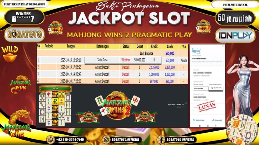 BOBATOTO JACKPOT SLOT MAHJONG WINS-2 Rp.50,000,000- LUNAS!!