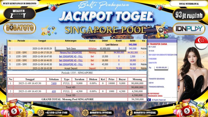 BOBATOTO – Selamat kepada User id : Z*****T Telah berhasil mendapatkan kemenangan besar pada permainan TOGEL SINGAPORE Dengan kemenangan Sebesar Rp.93,000,000,-. Setelah mengisi formulir withdraw dengan kurung waktu hanya 5 – 10 menit pihak bobatoto sudah melakukan transfer kepada pemilik Userid dan dana sudah dapat di cairkan oleh pemenang. Bukti pembayaran yang kami berikan merupakan bukti pembayaran yang SAH / VALID yang langung di dapatkan melaui tanda transfer transaksi dari Bank yang di tuju.